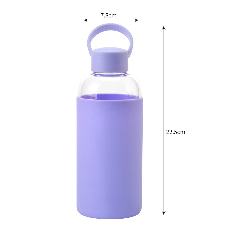 The glass water bottle is made from 100% durable borosilicate glass which is BPA, BPS, PVC, Lead, and Cadmium free. Our top-quality clear water bottles come with a protective silicone sleeve and silicone lid and handle. Your logo and company name can be imprinted on it for promotion.